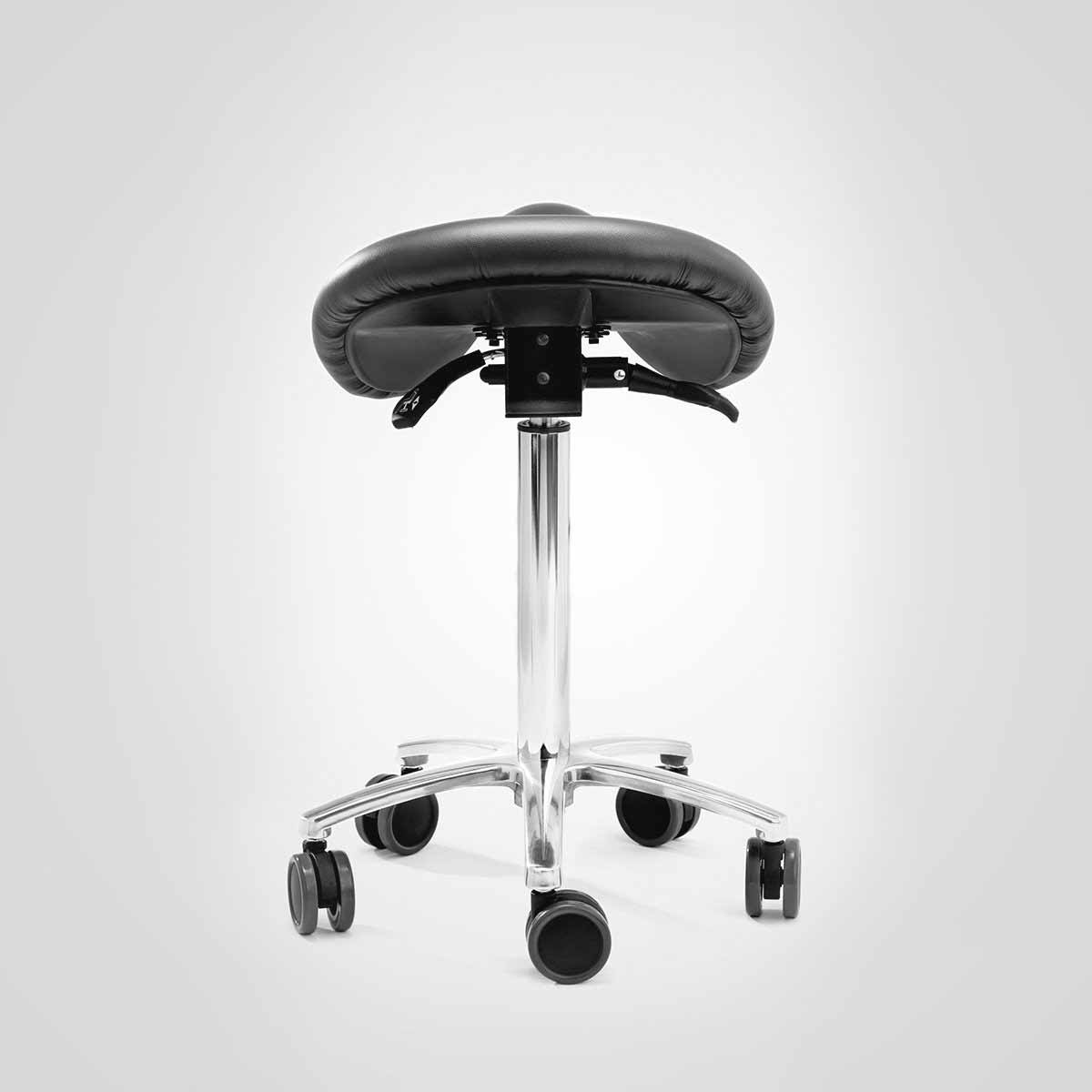 Valikoimassamme on myös useita muita pyörävaihtoehtoja. Voit esimerkiksi varustella satulatuolisi isoilla 75mm pyörillä! Paljon kiitosta saaneet isot pyörät ovat erinomainen lisä etenkin, jos tuolilla liikutaan paljon. Ne rullaavat pehmeästi ja lähes äänettömästi kaikilla yleisimmillä lattiapinnoilla. Muut pyörävaihtoehdot ja liukutallat löydät lisävarusteet-sivulta.