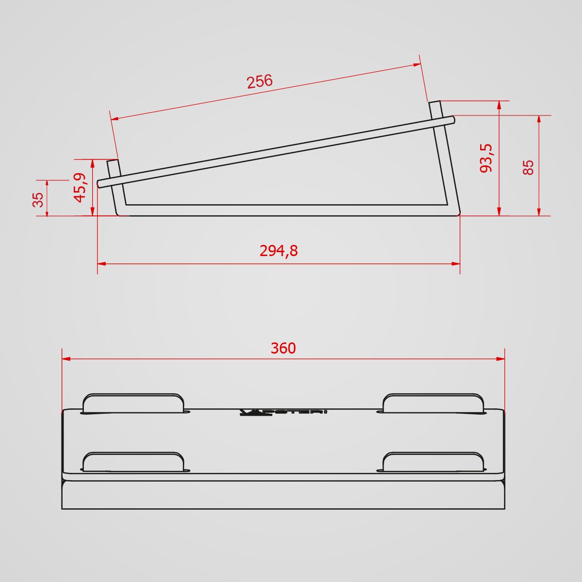 294,8 mm (lukituksen välinen syvyys 256 mm)